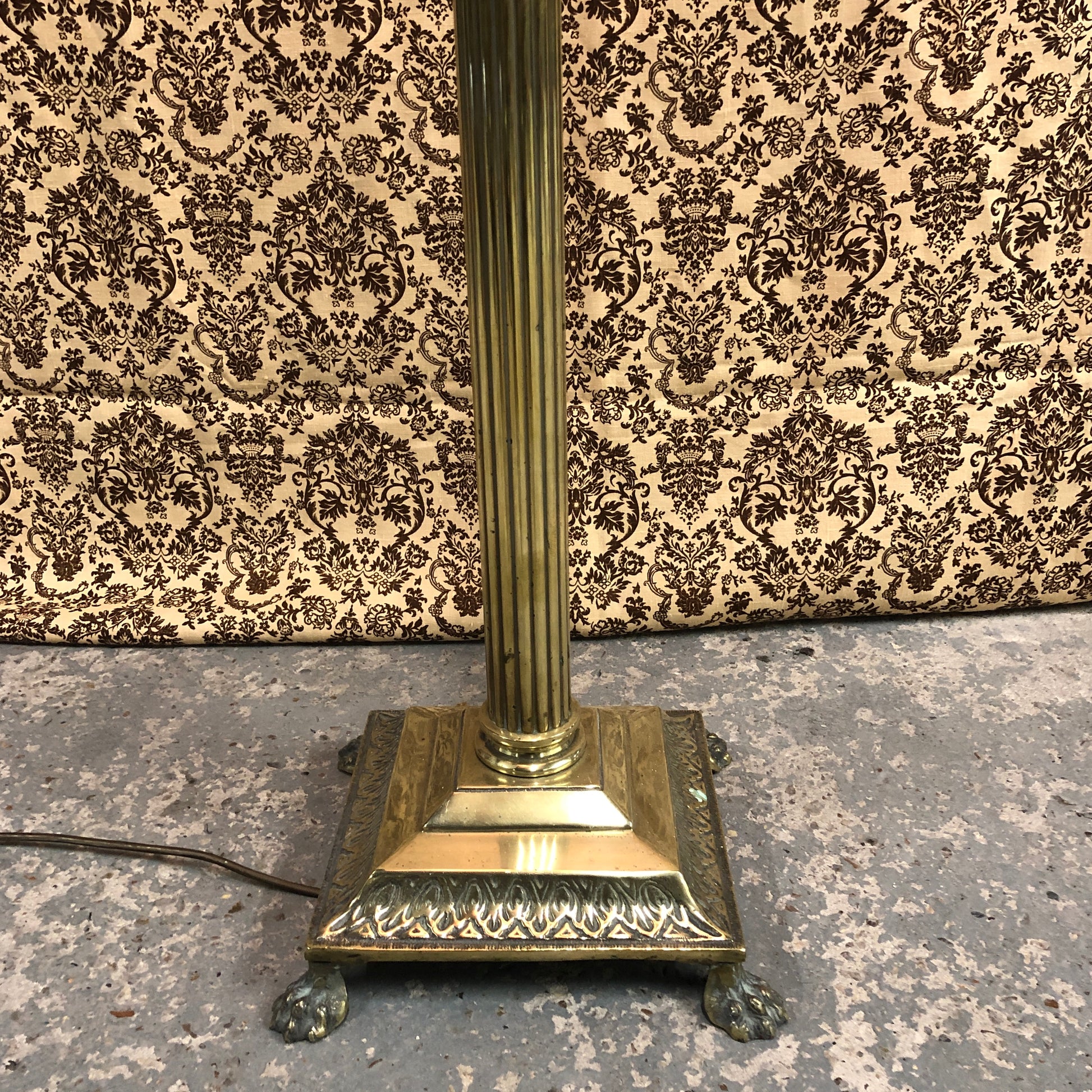 A solid brass Standard Lamp with square base, fluted reeded column & paw feet,