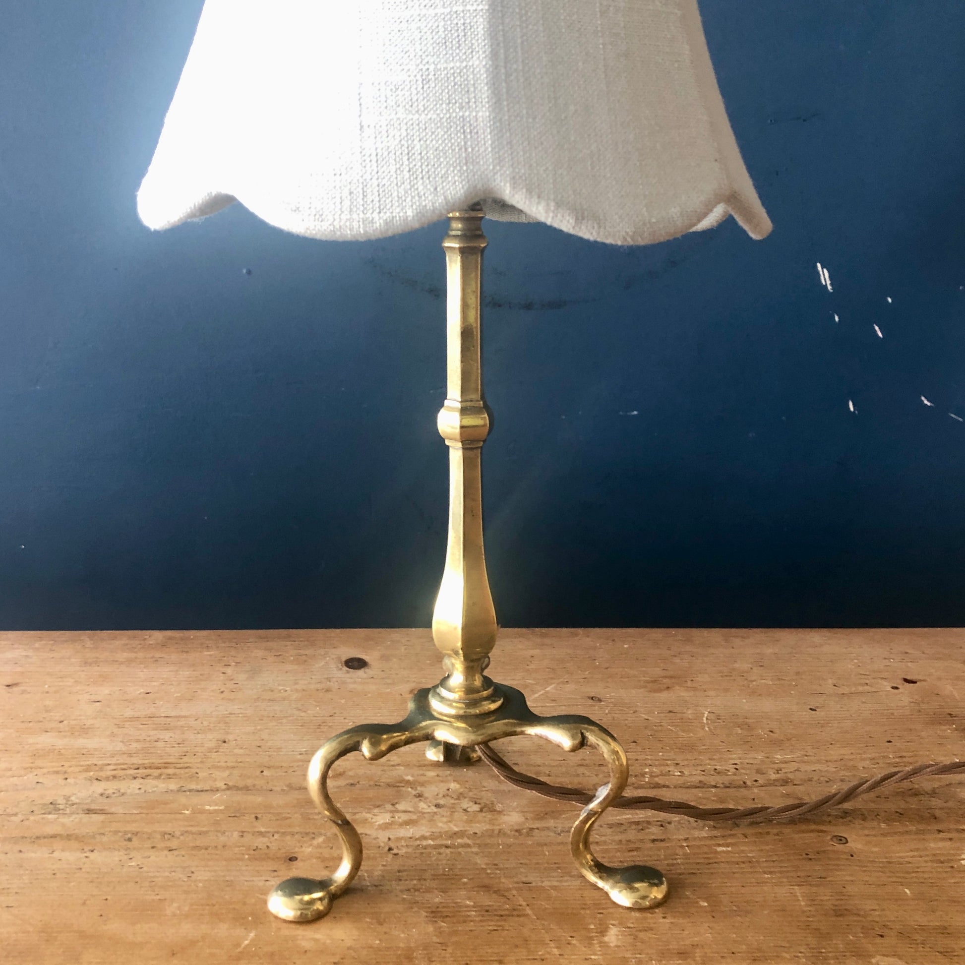 With drilled foot to mount the lamp on the table of a train or ship in motion.